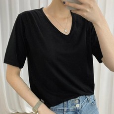 마이시즌 여성용 메리드 브이넥 반팔 티셔츠