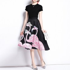 페이퍼먼츠 티셔츠 + 홍학 스커트 투피스 세트 00485