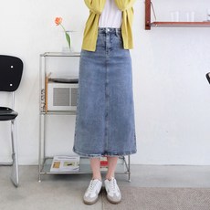 수비진 여성용 뒤 트임 스판 롱 데님 스커트 SP7130