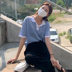큐니걸스 여성용 세이벤 배색카라반팔니트