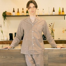 테라우드 남성용 통기성 클래식 체크 순면 긴팔 잠옷 상하세트