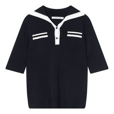 보브 여성용 빅 카라 하프 슬리브 니트 7152350204