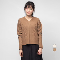 캐럿 여성용 브이넥 꽈배기 스웨터