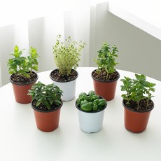 코코도르팜 허브 포트 소형 6종 애플민트+스피아민트+페퍼민트+골든레몬타임+오데코롱민트+바질 세트, 혼합색상, 1세트