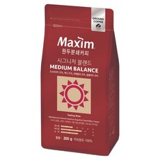 맥심 시그니처 블렌드 미디엄 밸런스 원두 분쇄 커피, 200g, 1개