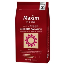 맥심 시그니처 블렌드 미디엄 밸런스 원두 커피, 1kg, 1개