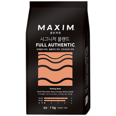 맥심 시그니처 블렌드 풀 어센틱 원두커피, 홀빈(분쇄안함), 1kg, 1개