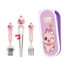 에디슨 프렌즈 4종 케이스 세트 오른손용, 토끼바니, 젓가락 + 스푼 + 포크 + 케이스, 1세트