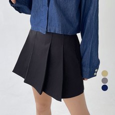 플랜데이 여성용 핀턱 주름 플리츠 A라인 미니스커트 + 벨트 세트