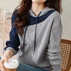 나바바 NT588 여성 배색 포인트 데일리 후드 티셔츠