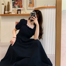 몬드스팟 여성용 스퀘어넥 퍼프 소매 롱 반팔 원피스 MO87