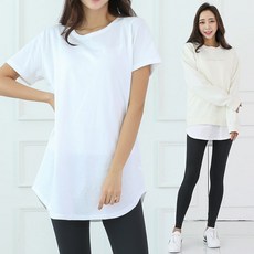 토마토팩토리 여성용 통기성 레이어드 롱 반팔 티셔츠