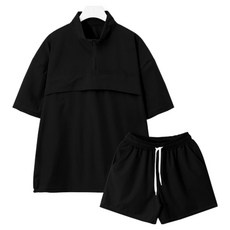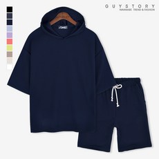 가이스토리 남자 여름 비치 워터 트레이닝 세트 반팔 오버핏 후드티 5부 밴딩 반바지