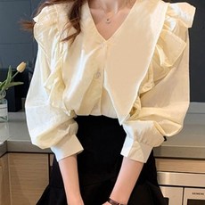 페이퍼먼츠 여성용 프릴 브이넥 하객룩 긴팔 블라우스 13722