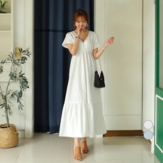 빼빼 V포인트 통기성 롱 반팔 원피스