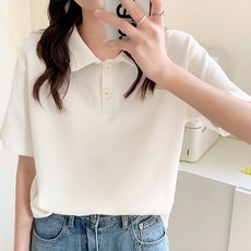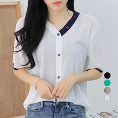제니트 여성용 리딩카라 단추 반팔니트 N1210