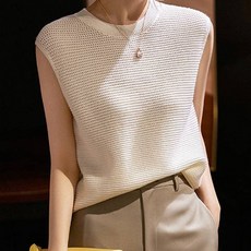 페이퍼먼츠 여성용 모던 라운딩 민소매 니트 티셔츠 04602
