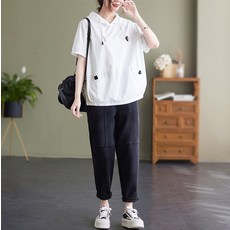 앤드스타일 여성용 패치라벨 후드 반팔 티셔츠 260441