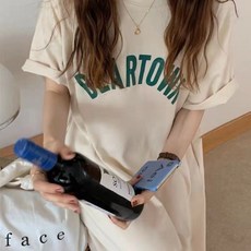 마켓에이 여성용 베어타운 레터링 박시 롱 원피스티 빅사이즈 포함