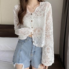 앤드스타일 여성용 로리리 레이스 뜨개 가디건 260494