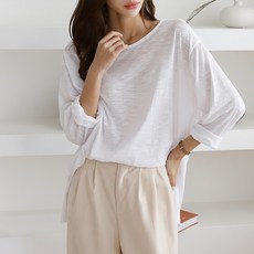 티탁 여성용 빅사이즈 루즈핏 보트 슬라브 롱 긴팔 티셔츠