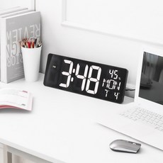 코비 무소음 LCD 모던 알람시계, 화이트