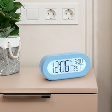 코비 무소음 LCD 모던 알람시계 AL-D14R, 블루